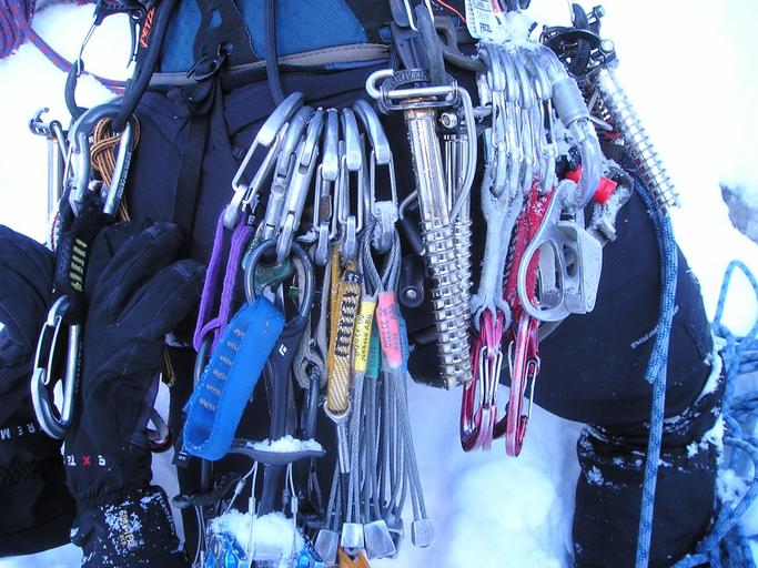 Keywords: Ice climbing equipment.jpg de Ausrüstung zum Eisklettern 2010-12-02 https //pixabay com/de/ausr C3 BCstung-eisschrauben-karabiner-914/ Simon Steinberger other versions Pixabay 914 confirmed INeverCry 2016-04-26 Pixabay files for migration/Migrated ImageNote 1 1380 451 305 425 2048 1536 2 Petzl Reverso ImageNoteEnd 1 ImageNote 2 448 635 484 899 2048 1536 2 Black Diamond Camalot ImageNoteEnd 2 ImageNote 3 842 563 374 970 2048 1536 2 Nuts stopper ImageNoteEnd 3 Ice screws Spring-loaded camming devices Nut climbing Petzl Reverso Quickdraws Ice climbing |