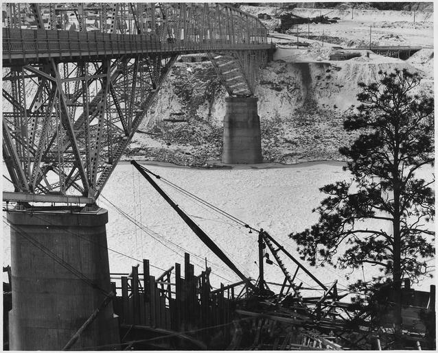 Keywords: Ice conditions in the Columbia River under highway bridge. Pier No. 2 and a portion of circular steel caisson appear... - NARA - 294245.tiff 82004267 Scope and content Photograph from Volume Two of a series of photo albums documenting the construction of the Grand Coulee Dam and related work on the Columbia Basin Project General notes 294245 Local identifier Department of the Interior Bureau of Reclamation Engineering and Research Center 05/18/1981 - 03/04/1988 NARA's Rocky Mountain Region Denver NRGA Building 48 Denver Federal Center West 6th Avenue and Kipling Street Denver CO 80225-0307 1936-02-19 Record group Record Group 115 Records of the Bureau of Reclamation 1889 - 2008 Record group ARC 444 Photograph albums compiled 1903 - 1972 Series ARC 293611 File unit File unit ARC Variant control numbers NAIL Control Number NRG-115-CONSTPHO85006-COLBASIN2975 no Other versions <gallery> File Ice conditions in the Columbia River under highway bridge Pier No 2 and a portion of circular steel caisson appear - NARA - 294245 tiff tif File Ice conditions in the Columbia River under highway bridge Pier No 2 and a portion of circular steel caisson appear - NARA - 294245 jpg jpg </gallery> NARA-cooperation PD-USGov National Register of Historic Places in Okanogan County Washington National Register of Historic Places in Douglas County Washington Grand Coulee Bridge