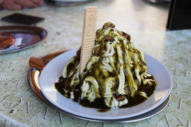 Keywords: ice cream ice cream sundae ice food spaghetti ice cream waffle ch vanilla vanilla ice cream spoon sweet dish delicious dessert treat chocolate icing schokoueberzug brand ice cream parlour
