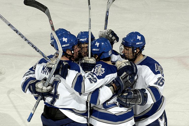 Keywords: ice hockey goal sport team helmet game sticks action score celebration competition play players skating skate