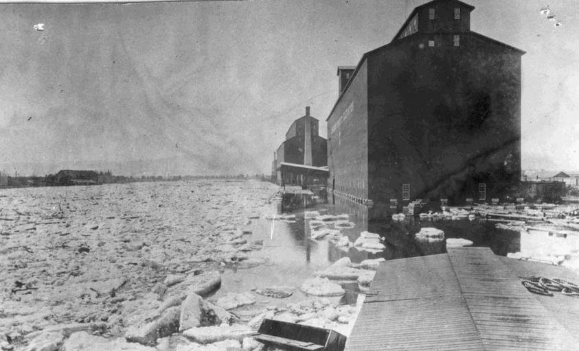 | Keywords: grain elevators grainelevators kam river kamriver fort william fortwilliam thunder bay thunderbay harbour winter cpr canadian pacific railway canadianpacificrailway ontario canada history blackandwhite monochrome black and white Description: Major flooding occurred in 1860, 1881 and 1893 when, in each case, thick ice on Lake Superior caused river ice to jam at the mouth of the Kam River. A general lack of industry prevented major damage from occurring, though in 1893, as this picture attests, the CPR elevators on the Kam were inundated. Dredging of the river has put an end to such jams. Accession No.: 977.113.141 Description: Major flooding occurred in 1860, 1881 and 1893 when, in each case, thick ice on Lake Superior caused river ice to jam at the mouth of the Kam River. A general lack of industry prevented major damage from occurring, though in 1893, as this picture attests, the CPR elevators on the Kam were inundated. Dredging of the river has put an end to such jams. Accession No.: 977.113.141 |