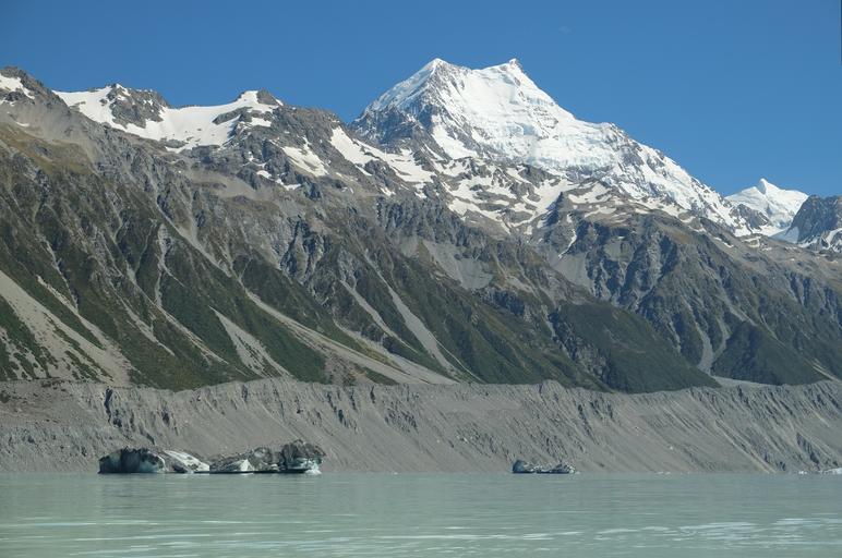 | Keywords: Icebergs on Tasman Glacier Lake in front of Aoraki Mount Cook.jpg Big icebergs on Tasman Glacier Lake in front of lateral moraine wall Aoraki / Mount Cook in the background Middle Peak on the left High Peak on the right ; Mt Tasman peeking out on the far right further away therefore appearing much lower due to perspective Own 2016-01-05 Pseudopanax wikipedia en 43 41 10 S 170 10 53 E Aoraki/Mount Cook Tasman Lake Mount Tasman Lateral moraines in New Zealand | ||||