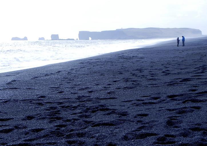Keywords: iceland black beach stones mood blue rest horizon haze sea reynisdrangar