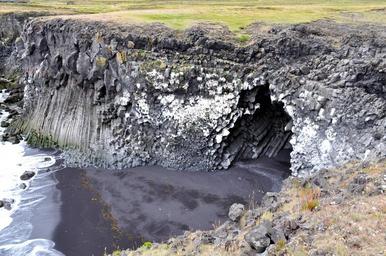 Keywords: iceland cliff búðardalur cave rock vukangestein columnar basalt black beach