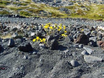 Keywords: iceland lava plant flower grey yellow stones rarity rarely karg overgrown lava rock volcanic rock scree