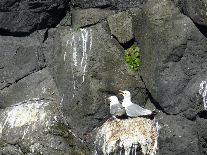 Keywords: iceland seagull bird nest pair coast atlantic sea cliff ocean nature rock rocky coast volcanic rock volcanic snaefellness snæfellsnes peninsula