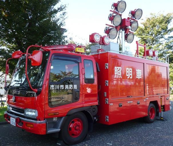 Keywords: Ichikawa-shomei.jpg ja 市 市消防 の照明車 own Photo by me Ypy31 2008/11/1 Fire engines of Ichikawa Isuzu Forward 4th generation Red fire engines