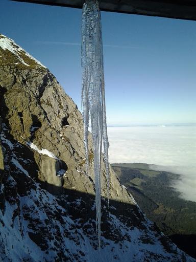 Keywords: icicle ice winter mountains sea of fog deep mist