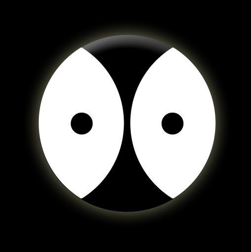 Keywords: Icon of two giant eyes on a cartoon head wearing a black mask, against a black background.jpg kah Own 2008-03-23 Fame91 Eye symbols black and white