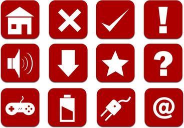 Keywords: icons set red home cancel check attention warning download speaker volume favorite star help question games battery power energy email plug delete remove gui