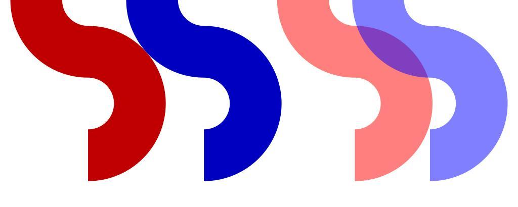 Keywords: Identical constant-width curves side-by-side don't necessarily fit together.svg If you juxtapose two constant-width curves stroked along an identically-shaped path side-by-side they don't necessarily fit tightly together At left there's are a red curve and blue curve both made from four circle quadrants where the radius of the circle is the same as the width of the stroke If the width of the stroked line and the radius along the center of the line is 20 then the radius along the outside edge of the line is 30 radius plus half line-width and the radius along the inside edge of the line is 10 radius minus half line-width A circular arc with radius 30 cannot fit inside a circular arc with radius 10 so the two lines do not fit tightly together as seen If the two lines are moved more closely together as at right then you get areas of overlap between the two lines shown in purple and also still gaps between the two lines unless the two lines are moved so close to each other that they overlap almost everywhere Self-made SVG file created by hand in a text editor HandSVG 2013 AnonMoos SVG geometry |