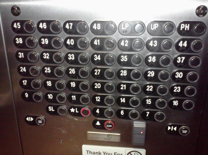 | Keywords: Idiosyncratic elevator panel.jpg en An en elevator panel in a high-rise building in the United States using an apparent numbering system for it's en storey levels 2012-02-11 18 15 12 own B137 other versions While technically this was taken from private property it's fairly ambiguous and unoffensive so I will release it in the public domain as if it's really my call so nobody has to attribute it so I could later claim I got it from them cc-zero Uploaded with UploadWizard Elevators in the United States Buttons |