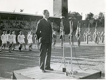 Keywords: idrett andre verdenskrig andreverdenskrig nordmenn i sverige under krigen nordmennisverigeunderkrigen 2. verdenskrig 2verdenskrig sport okkupasjonstiden outdoor Flyktningssjefen, oberstløytnant Olaf Helset taler ved åpningen av stevnet på Stadion 3. august 1944. London 8.9.44. RA/PA-1209/Uc/71/3/S 338 Flyktningssjefen, oberstløytnant Olaf Helset taler ved åpningen av stevnet på Stadion 3. august 1944. London 8.9.44. RA/PA-1209/Uc/71/3/S 338 |