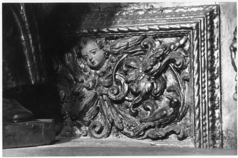 Keywords: talha portugal robert smith robert chester smith robertchestersmith igreja de são roque igrejadesãoroque igreja fundação calouste gulbenkian fundaçãocaloustegulbenkian bas relief basrelief texture cherub lisboa biblioteca de arte bibliotecadearte Capela da Sagrada Família: pormenor da base do retábulo. Talha dos séculos 17-18. Fotógrafo: Robert Chester Smith (1912-1975). Data de produção da fotografia original: 1962-1964. [CFT008.0539.ic] Capela da Sagrada Família: pormenor da base do retábulo. Talha dos séculos 17-18. Fotógrafo: Robert Chester Smith (1912-1975). Data de produção da fotografia original: 1962-1964. [CFT008.0539.ic]