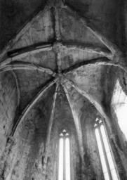 Keywords: gótico arquitectura convento do carmo conventodocarmo mário tavares chicó máriotavareschicó mário novais márionovais lisboa gótica arquitectura gótica arquitecturagótica Abóbada. Fotógrafo: Mário Novais, 1899-1967. Orientador científico: Mário Tavares Chicó, 1905-1966. Data aproximada de produção da fotografia original: 1954. [CFT015.204.ic] Igreja do Convento do Carmo Mandado construír em 1389 pelo Condestável D. Nuno Álvares Pereira, este edifício sofreu diversas campanhas, que lhe foram alterando a feição inicial. De entre elas, destacam-se as realizadas durante o pós-terramoto de 1755, apesar de não terem observado a necessidade de cobrir as naves, o cruzeiro e o transepto da igreja, quer devido à ausência dos meios necessários ao seu restauro e/ou adaptação, como de uma certa postura assumida no âmbito da teoria de conservação e restauro mantida pelos nossos mais destacados intelectuais desde, pelo menos, o 1.º quartel de oitocentos. De planta de cruz latina, constituída por três naves de cinco tramos, transepto saliente e cabeceira escalonada com a capela-mor ladeada por quatro absidíolos de diferentes dimensões - quer em largura, como em profundidade -, o seu frontespício encontra-se dividido em três panos, terminando em empena os laterais, rasgando-se por um amplo vão rectangular. Contrafortado com portal de arco com seis arquivoltas sobre colunas de capitéis vegetalistas, e inscrito em alfiz, o seu corpo central termina com uma rosácea truncada. Interiormente, as suas naves encontram-se apartadas por intermédio de pilares cruciformes, de capitéis vegetalistas e arcos quebrados, sendo que as naves laterais possuem, cada uma, quatro capelas, de arco igualmente quebrado, e emolduradas por colunas segmentadas, coroadas por janelas de vão curvo, no intervalo das quais encontramos mísulas de arranque das abóbadas. Desde 1864 que serve, simultaneamente, de sede da Associação dos Arqueólogos Portugueses e de espaço museológico - Museu Arqueológico do Carmo (MAC), também ele pertença desta sociedade secular. (Fonte IPPAR - tinyurl.com/457kc5) Abóbada. Fotógrafo: Mário Novais, 1899-1967. Orientador científico: Mário Tavares Chicó, 1905-1966. Data aproximada de produção da fotografia original: 1954. [CFT015.204.ic] Igreja do Convento do Carmo Mandado construír em 1389 pelo Condestável D. Nuno Álvares Pereira, este edifício sofreu diversas campanhas, que lhe foram alterando a feição inicial. De entre elas, destacam-se as realizadas durante o pós-terramoto de 1755, apesar de não terem observado a necessidade de cobrir as naves, o cruzeiro e o transepto da igreja, quer devido à ausência dos meios necessários ao seu restauro e/ou adaptação, como de uma certa postura assumida no âmbito da teoria de conservação e restauro mantida pelos nossos mais destacados intelectuais desde, pelo menos, o 1.º quartel de oitocentos. De planta de cruz latina, constituída por três naves de cinco tramos, transepto saliente e cabeceira escalonada com a capela-mor ladeada por quatro absidíolos de diferentes dimensões - quer em largura, como em profundidade -, o seu frontespício encontra-se dividido em três panos, terminando em empena os laterais, rasgando-se por um amplo vão rectangular. Contrafortado com portal de arco com seis arquivoltas sobre colunas de capitéis vegetalistas, e inscrito em alfiz, o seu corpo central termina com uma rosácea truncada. Interiormente, as suas naves encontram-se apartadas por intermédio de pilares cruciformes, de capitéis vegetalistas e arcos quebrados, sendo que as naves laterais possuem, cada uma, quatro capelas, de arco igualmente quebrado, e emolduradas por colunas segmentadas, coroadas por janelas de vão curvo, no intervalo das quais encontramos mísulas de arranque das abóbadas. Desde 1864 que serve, simultaneamente, de sede da Associação dos Arqueólogos Portugueses e de espaço museológico - Museu Arqueológico do Carmo (MAC), também ele pertença desta sociedade secular. (Fonte IPPAR - tinyurl.com/457kc5)