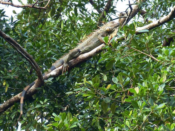 Keywords: iguana claw dragon reptile green lizard kaltblut animal creature tree climb jungle rainforest central america tortuguero national park scale dewlap incite