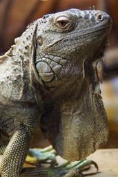 Keywords: iguana dragon close animal portrait reptile lizard scale scaly animal zoo portrait head skin flap attention skeptical critical