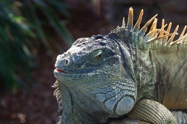 Keywords: iguana reptile green lizard kaltblut scale thorns comb head close animal