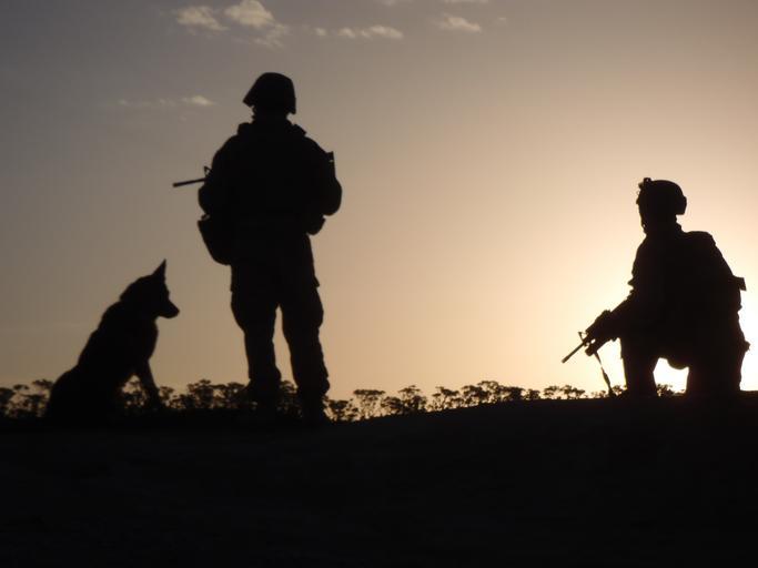 Keywords: II MHG Military Working Dog Platoon completes Afghanistan tour DVIDS432651.jpg en Two dog handlers with Military Working Dog Platoon Military Police Support Company II Marine Expeditionary Force Headquarters Group keep a look out during a mission in Helmand province The Marines supported numerous missions during their seven-month deployment to Afghanistan 2011-07-20 Forward https //www dvidshub net/image/432651 110720-N-+++++-002 2011-07-24 05 13 CAMP LEATHERNECK AF PD-USGov-Military-Navy Helmand Province in the War in Afghanistan 2001-present Camp Leatherneck Images from DoD uploaded by Fæ |