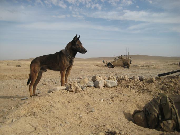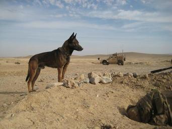 Keywords: II MHG Military Working Dog Platoon completes Afghanistan tour DVIDS432653.jpg en A military working dog with Military Working Dog Platoon Military Police Support Company II Marine Expeditionary Force Headquarters Group keeps a look out during a mission in Helmand province The platoon supported numerous missions during their seven month deployment to Afghanistan 2011-07-20 Forward https //www dvidshub net/image/432653 110720-N-+++++-004 2011-07-24 05 13 HELMAND PROVINCE AF PD-USGov-Military-Navy Helmand Province in the War in Afghanistan 2001-present Images from DoD uploaded by Fæ |