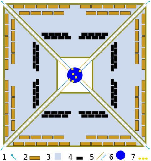 | Keywords: Ikaros solar sail key numbered bottom line.svg Ikaros solar sail when unfurled facing the sun with numbers-only key below Expanded key 1 blue square on a line Tip mass 0 5 kg 1 of 4 2 orange rectangle Liquid crystal device 1 of 80 3 blue square Membrane 7 5 um thick 20 metres diameter 4 black rectangle Solar cells 25 um thick 1 of many 5 yellow and blue lines Tethers 6 blue disc Main body 7 yellow dots Instruments Any rendering problems are probably due to wikimedia software See alternative keys and fonts in Other versions below self-made by 84user after looking at references at http //www jaxa jp/press/2010/06/20100611_ikaros_e html Small Solar Power Sail Demonstrator 'IKAROS' Successful Solar Sail Deployment and JAXA's YouTube video http //www youtube com/watch v 7_6HOqBkP2o 2010-06-12 84user thumb left Alternative key with numbers only thumb left Alternative key with Liberation Sans font in an attempt to find a solution to rendering problems with Inkscape and wikimedia The Opera browser renders all these SVG files fine thumb left Sun-facing IKAROS diagram without key thumb left Numbered key to sun-facing IKAROS diagram with DejaVu Sans font thumb left Sun-facing IKAROS diagram with numbers-only key at bottom thumb left Sun-facing IKAROS diagram plus numbered key with DejaVu Sans font validSVG http //validator w3 org/check uri Created with Inkscape Diagram legends IKAROS Illustrations of spacecraft Diagrams labelled with numbers only SVG spaceflight |