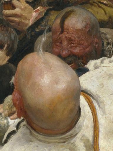 | Keywords: Ilja Jefimowitsch Repin - Zaporozhian Cossacks (image detail) 3.jpg Artwork title Saporoschzen schreiben dem türkischen Sultan einen Brief Bilddetail Les Cosaques zaporogues écrivant une lettre au sultan de Turquie detail The Zaporozhye Cossacks Replying to the Sultan image detail oil canvas cm 217 361 institution Russian Museum Yorck derivative work Hic et nunc 1878-1891 Creator Ilja Jefimowitsch Repin http //mail wikipedia org/pipermail/wikide-l/2005-April/012195 html Other versions <gallery>Ilja Jefimowitsch Repin 009 jpg Original</gallery> <gallery> Ilja Jefimowitsch Repin - Zaporozhian Cossacks image detail 1 jpg image detail Ilja Jefimowitsch Repin - Zaporozhian Cossacks image detail 2 jpg image detail Ilja Jefimowitsch Repin - Zaporozhian Cossacks image detail 4 jpg image detail Ilja Jefimowitsch Repin - Zaporozhian Cossacks image detail 5 jpg image detail Ilja Jefimowitsch Repin - Zaporozhian Cossacks image detail 6 jpg image detail Ilja Jefimowitsch Repin - Zaporozhian Cossacks image detail 7 jpg image detail Ilja Jefimowitsch Repin - Zaporozhian Cossacks image detail 8 jpg image detail Ilja Jefimowitsch Repin - Zaporozhian Cossacks image detail 9 jpg image detail </gallery> cropped Hic et nunc Ilja Jefimowitsch Repin 009 jpg PD-old-70 PD-Art-YorckProject Details of Reply of the Zaporozhian Cossacks 1880-1891 Oseledets |