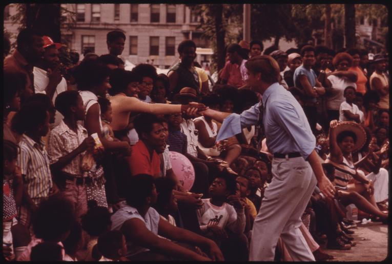 Keywords: ILLINOIS GOVERNOR DAN WALKER GREETS CHICAGO CONSTITUENTS DURING THE BUD BILLIKEN DAY PARADE, ONE OF THE LARGEST... - NARA - 556272.tif Scope and content General notes 556272 Local identifier 412-DA-13820 Environmental Protection Agency 12/02/1970 - NARA-Author White John H 1945- Photographer 4002141 <br /> Chicago Cook county Illinois United States North and Central America inhabited place 4201352 41 85 -87 65 <br /> Still Picture Records Section Special Media Archives Services Division NWCS-S National Archives at College Park 8601 Adelphi Road College Park MD 20740-6001 08/1973 Record group Record Group 412 Records of the Environmental Protection Agency 1944 - 2006 Record group ARC 708 DOCUMERICA The Environmental Protection Agency's Program to Photographically Document Subjects of Environmental Concern compiled 1972 - 1977 Series ARC 542493 File unit File unit ARC Variant control numbers Agency-Assigned Identifier 231/20/013820<br /> NAIL Control Number NWDNS-412-DA-13820 yes Other versions <gallery> File ILLINOIS_GOVERNOR_DAN_WALKER_GREETS_CHICAGO_CONSTITUENTS_DURING_THE_BUD_BILLIKEN_DAY_PARADE _ONE_OF_THE_LARGEST _-_NARA_-_556272 tif tif File ILLINOIS_GOVERNOR_DAN_WALKER_GREETS_CHICAGO_CONSTITUENTS_DURING_THE_BUD_BILLIKEN_DAY_PARADE _ONE_OF_THE_LARGEST _-_NARA_-_556272 jpg jpg </gallery> NARA-cooperation PD-USGov Bud Billiken Parade and Picnic 1973 John H White Daniel Walker Handshakes NARA TIF images with categorized JPGs |