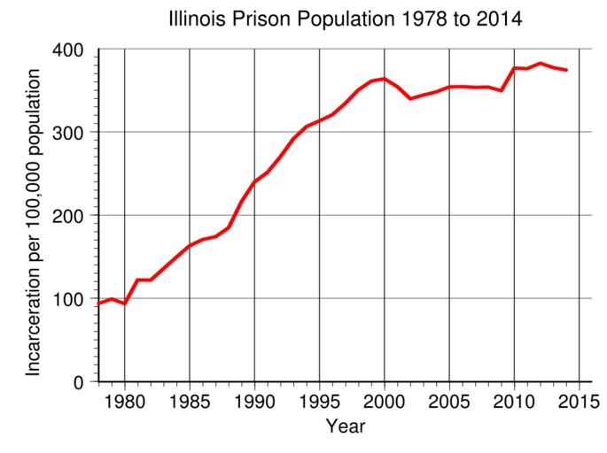 | Keywords: Illinois Prison Population.svg en Illinois prison incarceration rate per 100 000 population from 1978 to 2014 Data from http //www bjs gov/index cfm ty nps BJS 2016-05-11 own Delphi234 other versions current annually Generated with Wikimedia SVG Chart SVG Chart/box cc-zero Prisons in Illinois Imprisonment and detention rates in the United States |