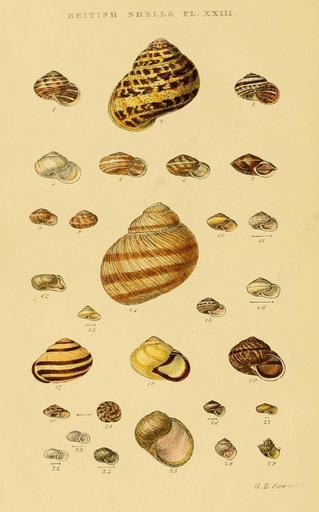 | Keywords: Illustrated Index of British Shells Plate 23.jpg En Illustrated Index of British Shells Plate XXIII <table> <tr><td>Fig </td> <td>Name in text</td> <td>Accepted name 2013 </td></tr> <tr><td style text-align right; padding-right 2em >1</td> <td style padding-right 2em >Helix pisana Müller</td> <td>Theba pisana</td></tr> <tr><td style text-align right; padding-right 2em >2</td> <td style padding-right 2em >Helix aspersa Müller</td> <td>Helix aspersa</td></tr> <tr><td style text-align right; padding-right 2em >3</td> <td style padding-right 2em >Helix virgata Costa</td> <td>Cernuella virgata</td></tr> <tr><td style text-align right; padding-right 2em >4</td> <td style padding-right 2em >Helix cantiana Montagu</td> <td>Monacha cantiana</td></tr> <tr><td style text-align right; padding-right 2em >5</td> <td style padding-right 2em >Helix ericetorum Müller</td> <td>Helicella itala</td></tr> <tr><td style text-align right; padding-right 2em >6</td> <td style padding-right 2em >Helix rufescens Pennant</td> <td>Arianta arbustorum</td></tr> <tr><td style text-align right; padding-right 2em >7</td> <td style padding-right 2em >Helix lapicida Linnaeus</td> <td>Helicigona lapicida</td></tr> <tr><td style text-align right; padding-right 2em >8 9</td> <td style padding-right 2em >Helix hispida Linnaeus</td> <td>Trochulus hispidus</td></tr> <tr><td style text-align right; padding-right 2em >10</td> <td style padding-right 2em >Helix fusca Montagu</td> <td>Zenobiella subrufescens</td></tr> <tr><td style text-align right; padding-right 2em >11</td> <td style padding-right 2em >Helix sericea Draparnaud</td> <td>Trochulus sericeus</td></tr> <tr><td style text-align right; padding-right 2em >12</td> <td style padding-right 2em >Helix obvoluta Müller</td> <td>Helicodonta obvoluta</td></tr> <tr><td style text-align right; padding-right 2em >13</td> <td style padding-right 2em >Helix fulva Müller</td> <td>Euconulus fulvus</td></tr> <tr><td style text-align right; padding-right 2em >14</td> <td style padding-right 2em >Helix pomatia Linnaeus</td> <td>Helix pomatia</td></tr> <tr><td style text-align right; padding-right 2em >15</td> <td style padding-right 2em >Helix caperata Montagu</td> <td>Candidula intersecta</td></tr> <tr><td style text-align right; padding-right 2em >16</td> <td style padding-right 2em >Helix carthusiana Müller</td> <td>Monacha cartusiana</td></tr> <tr><td style text-align right; padding-right 2em >17 18</td> <td style padding-right 2em >Helix nemoralis Linnaeus</td> <td>Cepaea nemoralis</td></tr> <tr><td style text-align right; padding-right 2em >19</td> <td style padding-right 2em >Helix arbustorum Linnaeus</td> <td>Arianta arbustorum</td></tr> <tr><td style text-align right; padding-right 2em >20 21</td> <td style padding-right 2em >Helix rotundata </td> <td>Discus rotundatus</td></tr> <tr><td style text-align right; padding-right 2em >22 23</td> <td style padding-right 2em >Helix pulchella Müller</td> <td>Vallonia pulchella</td></tr> <tr><td style text-align right; padding-right 2em >24</td> <td style padding-right 2em >Helix revelata Férussac</td> <td>Ponentina revelata</td></tr> <tr><td style text-align right; padding-right 2em >25</td> <td style padding-right 2em >Helix aperta </td> <td>Helix aperta</td></tr> <tr><td style text-align right; padding-right 2em >26</td> <td style padding-right 2em >Helix umbilicata Montagu</td> <td>Pyramidula umbilicata</td></tr> <tr><td style text-align right; padding-right 2em >27</td> <td style padding-right 2em >Helix pygmæa Draparnaud</td> <td>Punctum pygmaeum</td></tr> <tr><td style text-align right; padding-right 2em >28</td> <td style padding-right 2em >Helix lamellata Jeffreys</td> <td>Spermodea lamellata</td></tr> <tr><td style text-align right; padding-right 2em >29</td> <td style padding-right 2em >Helix aculeata Müller</td> <td>Acanthinula aculeata</td></tr> </table> 1859 http //archive org/details/illustratedindex00sowe<br/> Accepted names from http //www animalbase uni-goettingen de/zooweb/servlet/AnimalBase/search AnimalBase and http //www bagniliggia it/WMSD/WMSDsearch htm Worldwide Mollusc Species Database http //www marinespecies org/index php WoRMS database and http //species-identification org/index php Marine Species Identification Portal Creator George Brettingham Sowerby II PD-Art PD-old-100 Helix cantiana Sowerby jpg Helix fusca Sowerby jpg Helix sericea Sowerby jpg Helix fulva Sowerby jpg Helix caperata Sowerby jpg Theba pisana Helix aspersa Cernuella virgata Monacha cantiana Helicella itala Arianta arbustorum Helicigona lapicida Trochulus hispidus Zenobiella subrufescens Trochulus sericeus Helicodonta obvoluta Euconulus fulvus Helix pomatia Candidula intersecta Monacha cartusiana Cepaea nemoralis Discus rotundatus Vallonia pulchella Ponentina revelata Cantareus apertus Pyramidula umbilicata Punctum pygmaeum Spermodea lamellata Acanthinula aculeata Illustrated Index of British Shells |