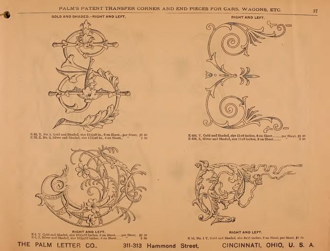 | Keywords: public domain sketch drawing cartoon print text illustration pattern monochrome map Public Domain Book:Illustrated sample book & price list of Palm's patent transfer letters ornaments & trade designs for signs, wagons, cars, machines, etc manufactured by the Palm Letter Co Published 1901 in Cincinnati . Written in English. openlibrary.org/works/OL16718075W/Illustrated_sample_book... Curated by: www.elusivemu.se Public Domain Book:Illustrated sample book & price list of Palm's patent transfer letters ornaments & trade designs for signs, wagons, cars, machines, etc manufactured by the Palm Letter Co Published 1901 in Cincinnati . Written in English. openlibrary.org/works/OL16718075W/Illustrated_sample_book... Curated by: www.elusivemu.se |