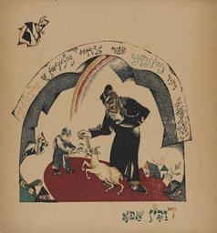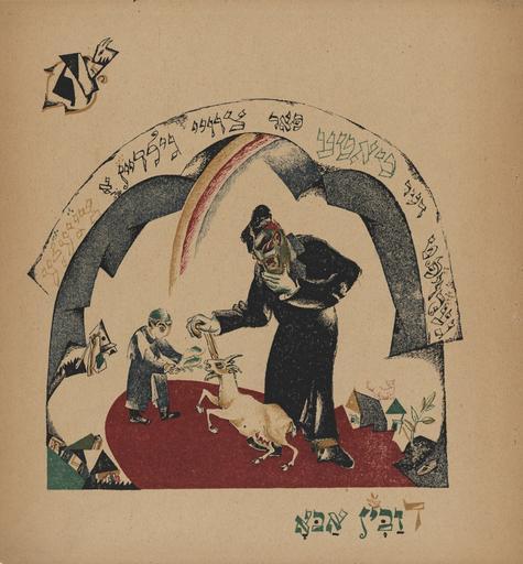 | Keywords: Illustration by El Lissitzky from Jewish book 1919.jpg en wikipedia 2012 August 18 An illustration by Russian avant garde artist El Lissitzky in the book Jewish children's book Had gadya One goat http //www getty edu/research/conducting_research/digitized_collections/lissitzky/2_yiddish/index html 1919 Creator El Lissitzky PD-old-70-1923 Original upload log en wikipedia King of Hearts CommonsHelper en wikipedia Illustration_by_El_Lissitzky_from_Jewish_book_1919 jpg 2005-03-23 02 04 Clngre 447×500× 97687 bytes <nowiki>An illustration by Russian avant garde artist El Lissitzky in the book Jewish childrens book Had gadya One goat 1919 PD-old-50 </nowiki> __NOTOC__ El Lissitzky Chad Gadya–02.jpg Artwork Creator El Lissitzky Gekauft der fater An illustration by Russian avant garde artist El Lissitzky in the book Jewish children's book Had gadya One goat Illustrationen zum alten hebräischen Lied Chad Gadya Eine kleine Ziege Illustration zur ersten Strophe des Liedes der Vater kauft die Ziege Auf einer roten Fläche stehen ein schwarzgekleideter Greis mit Stock das Zicklein und ein Junge der ihr Grünfutter reicht Rechts und links sind Häuser zu sehen über ihnen ein Regenbogen aus Gelb Rot und Blau der den Himmel teilt à ber allem befindet sich ein hebräisches Spruchband das sich auf die Episode bezieht 1919 Lithography Size cm 21 0 24 0 / Size cm 25 4 27 2 Kunstmuseum Moritzburg Halle Saale object history exhibition history credit line Publisher unknown Edition unknown accession number place of creation http //www getty edu/research/conducting_research/digitized_collections/lissitzky/2_yiddish/index html Getty edu / http //www museum-digital de/san/singleimage php imagenr 26379 inwi 0 w 1240 h 646 Museum-Digital de http //www museum-digital de/san/index php t objekt oges 15313 Museum-Digital de CC-3 0-by-nc-sa Kunstmuseum Moritzburg Halle Saale Original upload log en wikipedia King of Hearts CommonsHelper en wikipedia Illustration_by_El_Lissitzky_from_Jewish_book_1919 jpg 2005-03-23 02 04 Clngre 447×500× 97687 bytes An illustration by Russian avant garde artist El Lissitzky in the book Jewish childrens book Had gadya One goat 1919 PD-old-50 Chad Gadya by El Lissitzky 1919 lithographs |