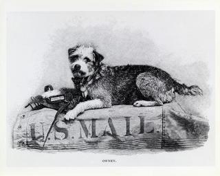 | Keywords: smithsonian institution smithsonianinstitution dog owney usps railway mail service railwaymailservice c. 1895 c1895 black and white blackandwhite canine us mail usmail mail carrier bag mailcarrierbag postal mascot postalmascot postal images postalimages postal history postalhistory dog mascot dogmascot mail images mailimages national postal museum nationalpostalmuseum mail across the commons mailacrossthecommons drawing black and white Description: This is an illustration of Owney, the dog who was the unofficial mascot of the Railway Mail Service in the 1890s. Owney is shown posed on a U.S. mail sack. Creator/Photographer: Unidentified photographer Medium: Black and white photographic print Culture: American Geography: USA Date: 1895 Collection: Owney Collection Persistent URL: arago.si.edu/index.asp?con=2&cmd=1&id=194298 Repository: National Postal Museum Accession number: A.2006-46 Description: This is an illustration of Owney, the dog who was the unofficial mascot of the Railway Mail Service in the 1890s. Owney is shown posed on a U.S. mail sack. Creator/Photographer: Unidentified photographer Medium: Black and white photographic print Culture: American Geography: USA Date: 1895 Collection: Owney Collection Persistent URL: arago.si.edu/index.asp?con=2&cmd=1&id=194298 Repository: National Postal Museum Accession number: A.2006-46 |