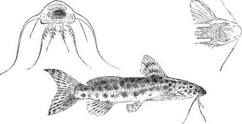 <em>Synodontis multimaciilatus. Type (A. M. C). Head 1% times as long as broad, rugose from between the eyes; snout rounded, as long as postocular part of head; eye supero-lateral, 4 times in length of head, 1£ times in interorbital width ; lips moderately 2 e 2</em>