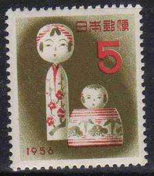 Keywords: Image-Japaneas New year Stamp of 1956.jpg en Japanese New year Stamp of 1956 with seal script ja 日 の昭和31年用年 切手 投稿 の切手コレクションをスキャン Carokazu 1955-12-20 PD-Japan New Year stamps Stamps of Japan 1955 Kokeshi