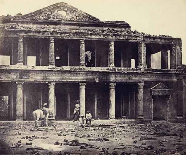 Keywords: Image-Secundra Bagh after Indian Mutiny higher res.jpg Interior of the Secundra Bagh after the Slaughter of 2 000 Rebels by the 93rd Highlanders and 4th Punjab Regiment First Attack of Sir Colin Campbell in November 1857 Lucknow Albumen silver print by Felice Beato 1858 Located on the outskirts of Lucknow it was the scene of intense fighting in November 1857 Following the action the British dead were buried in a deep trench but the Indian corpses were left to rot Later the city had to be evacuated and was not recaptured until March 1858 and it was shortly afterwards that Beato probably took this photograph As one contemporary commentator described it A few of their rebel bones and skulls are to be seen in front of the picture but when I saw them every one was being regularly buried so I presume the dogs dug them up A British officer Sir George Campbell noted in his memoirs Beato's presence in Lucknow and stated that he probably had the bones uncovered to be photographed However William Howard Russell of The Times recorded seeing many skeletons still lying around in April 1858 Photographic views of Lucknow taken after the Indian Mutiny Albumen silver print 26 2 x 29 8 cm The image was taken by Felice Beato a Corfiote by birth who visited India during the period of the Indian Mutiny or First War of Indian Independence; possibly on a commissioned by the War Office in London he made documentary photographs showing the damage to the buildings in Lucknow following the two sieges It is known that he was in Lucknow in March and April of 1858 within a few weeks of the capture of that city by British forces under Sir Colin Campbell His equipment was a large box camera using 10 x 12 plates which needed a long exposure and he made over 60 photographs of places in the city connected with the military events Beato also visited Delhi Cawnpore and other 'Mutiny' sites where he took photographs http //web archive org/web/20071222051622/http //www brown edu/Facilities/University_Library/collections/askb/beato/beato html Anne S K Brown Military Collection Photographic views of Lucknow taken after the Indian Mutiny 1858-04 Creator Felice Beato Public Domain Image Secundra Bagh after Indian Mutiny jpg; File Secundra Bagh after Indian Mutiny-m jpg Liscensing PD-old-100 Sieges Photographs by Felice Beato Human corpses Black and white photographs of ruins Albumen prints Uttar Pradesh in the 1850s Historical images of Sikandar Bagh Siege of Lucknow |