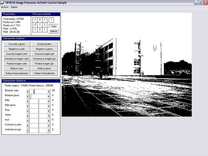 | Keywords: Imagen binaria.jpg UPIICSA IPN - Ingeniería en Informática Software para tratamiento de imágenes Una imagen binarizada es la representación gráfica de una matriz de MxN elementos numéricos los cuales solo pueden tener dos valores 0 ò 255 que corresponden al color negro y al blanco respectivamente 2006-10-19 own assumed Cyborg~commonswiki Image processing Instituto Politécnico Nacional |