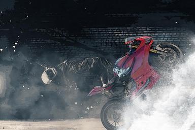Keywords: imagination lifting motorcycle helmet wheelie wave waves water sea power processing road landscape jockey wallpaper