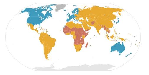 Keywords: Imf-advanced-un-least-developed-2008.svg Map of the world Prepared by User Spacepotato using the public domain map Image BlankMap-World6 svg Released into the public domain Map of the world Countries designated by the International Monetary Fund in the April 2009 World Economic Outlook http //www imf org/external/pubs/ft/weo/2009/01/weodata/groups htm as advanced economies are in blue 0000ff while countries designated as emerging and developing economies are in orange ff9000 and red ff0000 ; of these those designated by the United Nations http //www unohrlls org/en/ldc/related/62/ as least developed countries are in red while others are in orange Countries shown in gray were not classed by the IMF 2008-05-26 own Spacepotato Economic maps of the world