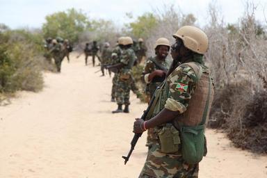 | Keywords: outdoor Burundian soldiers, as part of the African Union Mission in Somalia, patrol around the town of Ragaele in the Middle Shabelle region of Somalia on October 2. The town of Ragaele was liberated from al Shabab militants by the Burundian forces on October 1. AMISOM Photo / Fanah Mohamed Burundian soldiers, as part of the African Union Mission in Somalia, patrol around the town of Ragaele in the Middle Shabelle region of Somalia on October 2. The town of Ragaele was liberated from al Shabab militants by the Burundian forces on October 1. AMISOM Photo / Fanah Mohamed |