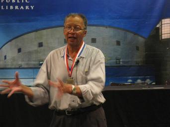 Keywords: kalamazoo public library kalamazoopubliclibrary author books writing literature education Author Walter Dean Myers, Library of Congress National Ambassador for Young People's Literature, at Kalamazoo Public Library with KPL and KPS staff and administrators, August 7, 2013. www.kpl.gov photo by Keith Howard Author Walter Dean Myers, Library of Congress National Ambassador for Young People's Literature, at Kalamazoo Public Library with KPL and KPS staff and administrators, August 7, 2013. www.kpl.gov photo by Keith Howard