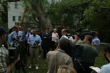 | Keywords: people outdoor Governor Mark R. Warner (left) visits a Richmond neighborhood after Hurricane Isabel, assessing the damages and speaking with citizens, September 22, 2003. With U.S. Representative Eric Cantor (R-7th District (right) and U.S. Representative Bobby Scott (D-3rd District) (center). Governor Mark R. Warner, Press Office records, 2001-2006 (bulk 2002-2006), accession 42460, Box 64 cd 2, 9-22-03 Tour of Richmond\205CANON Governor Mark R. Warner (left) visits a Richmond neighborhood after Hurricane Isabel, assessing the damages and speaking with citizens, September 22, 2003. With U.S. Representative Eric Cantor (R-7th District (right) and U.S. Representative Bobby Scott (D-3rd District) (center). Governor Mark R. Warner, Press Office records, 2001-2006 (bulk 2002-2006), accession 42460, Box 64 cd 2, 9-22-03 Tour of Richmond\205CANON |