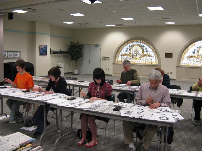 Keywords: kalamazoo library reading together community art craft shodo japan culture indoor room On March 16, 2010, Michiko Yoshimoto, Japan Outreach Coordinator at the Soga Japan Center of Western Michigan University, and a member of the Reading Together Steering Committee, explained the basics of shodo, the way of writing the Japanese language. www.readingtogether.us On March 16, 2010, Michiko Yoshimoto, Japan Outreach Coordinator at the Soga Japan Center of Western Michigan University, and a member of the Reading Together Steering Committee, explained the basics of shodo, the way of writing the Japanese language. www.readingtogether.us