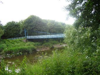 Keywords: View of shaky bridge from footpath alongside the derwent