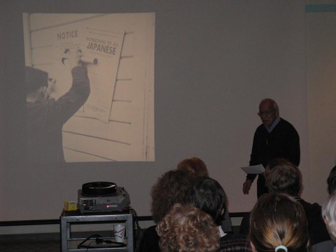 | Keywords: kalamazoo library community reading wwii internment service indoor On Thursday, March 25, 2010, guest speakers Dr. Iwao Ishino, professor of anthropology, and Dr. Sadayoshi Omoto, professor of art, both retired from Michigan State University, shared their stories of internment in a WRA camp and WWII military intelligence service. Dr. Takashi Yoshida, Western Michigan University professor of history, was moderator. www.kpl.gov/reading-together/2010/ On Thursday, March 25, 2010, guest speakers Dr. Iwao Ishino, professor of anthropology, and Dr. Sadayoshi Omoto, professor of art, both retired from Michigan State University, shared their stories of internment in a WRA camp and WWII military intelligence service. Dr. Takashi Yoshida, Western Michigan University professor of history, was moderator. www.kpl.gov/reading-together/2010/ |