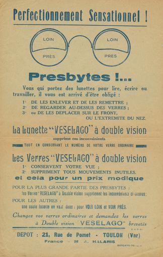| Keywords: Бифокальные очки доктора Василия Веселаго (2).jpg ru Бифокальные очки докто а Василия Веселаго 1882 Веселаго Василий Се геевич окончил фельдше скую школу в К онштадте служил на флоте в Севастополе Был становым п иставом 2-го стана а иупольского уезда станция Волноваха в чине губе нского сек ета я Эмиг и овал в 1919 году Как в ач участвовал во ф анцузском Соп отивлении uk Біфокальні окуля и докто а Василя Веселаго 1882 з Тулона Ф анція Веселаго Василь Се гійович закінчив фельдше ську школу в К онштадті служив на флоті в Севастополі Був становим п иставом 2-го стана а іупольського повіту станція Волноваха в чині губе нського сек ета я Еміг ував в 1919 оці Як ліка б ав участь у Ф анцузькому Русі Опо и fr Bifocals lunettes Dr Basile Veselago 1882 de Toulon d'origine russe né à Saint-Pétersbourg Membre de la Résistance intérieure française 1949 1958 <small><sub>chelo</sub></small>Vechek / <small><sup>talk</sup></small> с о игинала из собственного а хива <small><sub>chelo</sub></small>Vechek / <small><sup>talk</sup></small> from original in own archive <small><sub>chelo</sub></small>Vechek / <small><sup>talk</sup></small> de l'original en propre archive ru е указывается en Not credited PD-heirs Patent medicine advertising Bifocals Vasily Veselago |
