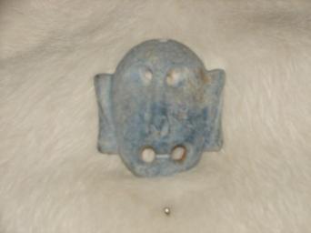 | Keywords: 玉 面具 三星堆 玉而富 1096.jpg zh-tw 器名:玉 具 器別:生 紋飾:立體 泌色:無 鐵灰色﹞ 代:三星堆文化 礦物學名:岫岩玉 黄玉﹞ 三星堆文化-年代約4800至2200年 三星堆文化-小件配飾品 數百種的 形 c形龍斧鋤器 猪龍斧鋤器 玉梟 玉鷹斧鋤器﹞ 具 異形獸斧鋤器 玉蟬複合體等 此器質化晶變 次晶增生 受人工拋光打磨 留原 咬風化 生 盤玩,三 立體 肖生﹞ 形特別 曲線流暢 雕工傳神 創意佳 術品﹞ own 玉 富 2008-12-18 Sanxingdui |