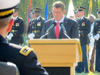 Keywords: Secretary of Defense Mr. Ash Carter addresses the audience during the National POW/MIA Recognition Day ceremony at the Pentagon River Terrace Parade field Sept 18, 2015. Secretary of Defense Mr. Ash Carter addresses the audience during the National POW/MIA Recognition Day ceremony at the Pentagon River Terrace Parade field Sept 18, 2015. |