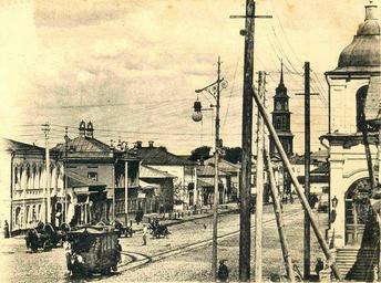 | Keywords: Тула. Пересечение улиц Посольской и Суворовской.jpg en Tula Ambassadorial street now Sovetskaya Street near the intersection with the Suvorovskaya street now the Red Army prospectus ru Тула Улица Посольская ныне улица Советская в айоне пе есечения с улицей Суво овской ныне К асноа мейский п оспект фото из а хива неивестно начало XX века PD-RusEmpire Historical images of Tula | ||||