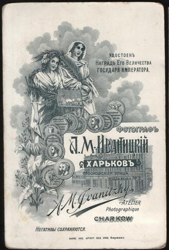 Keywords: Иваницкий А.М. Паспарту.jpg Иваницкий Алексей ихайлович 1854 Белго од - 1920 Симфе ополь Паспа ту Ха ьков scanned by old paper card between other date s 1898 s 1900 Creator Alexei Ivanitsky PD-old-auto 1920 Alexei Ivanitsky Moskovskyi Avenue Kharkiv |