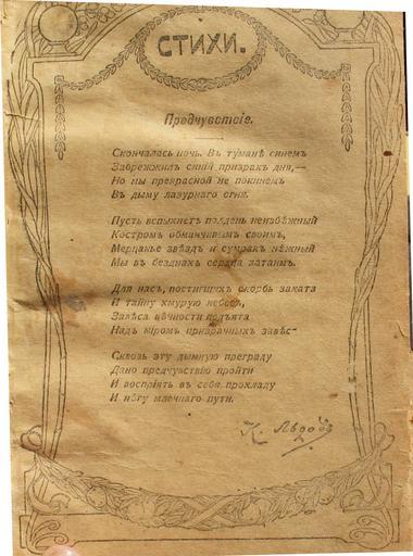 Keywords: Льдов Константин Предчувствие Новое Слово 1914.JPG Russian poet Konstantin Ldov signature on his poem 1914 ru Автог аф поэта Константина Льдова под его стихотво ением Жу нал овое слово 1914 год own photo by Victor Vizu Konstantin Ldov 1914 PD-trivial signature Russia signature PD-RusEmpire 1914 Novoe Slovo Konstantin Ldov Signatures of poets from Russia Magazines of Russia 1914 |